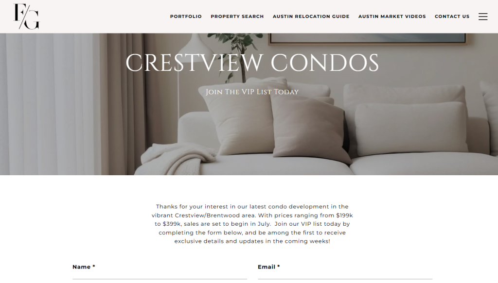 For example, the Fenton Grossman Group has a landing page that they direct social media users to collect contact information and begin the lead nurturing process: