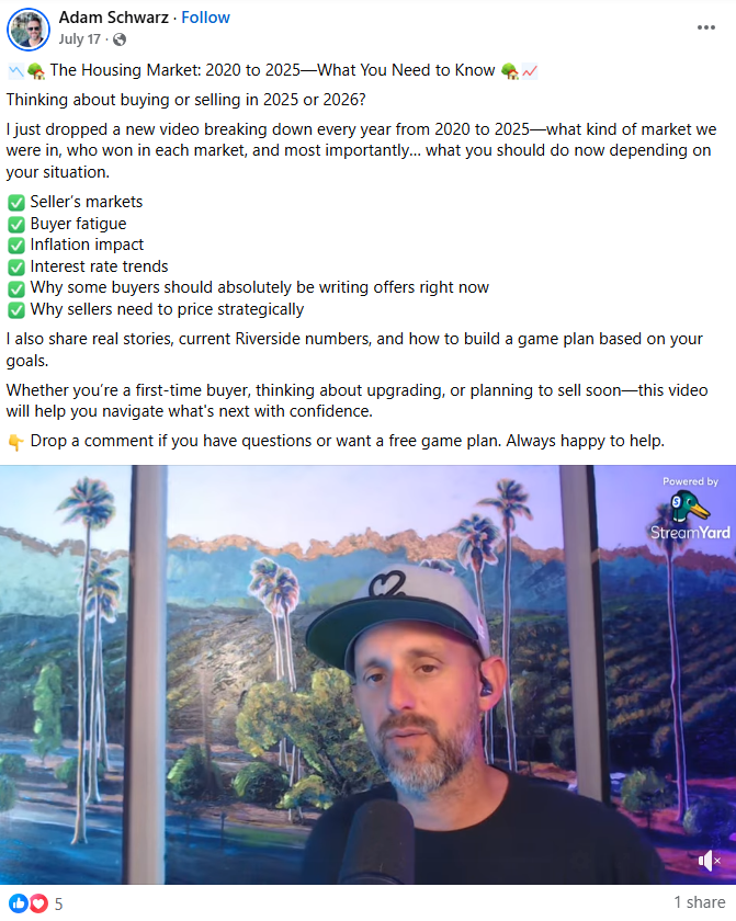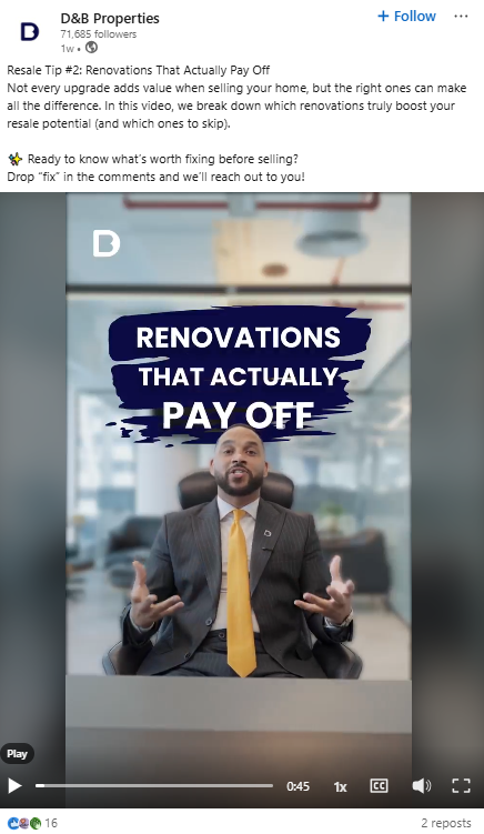 For instance, if your listing posts are generating interest, publish more of them. If people like your videos talking about tips for selling homes, lean into this type of content.