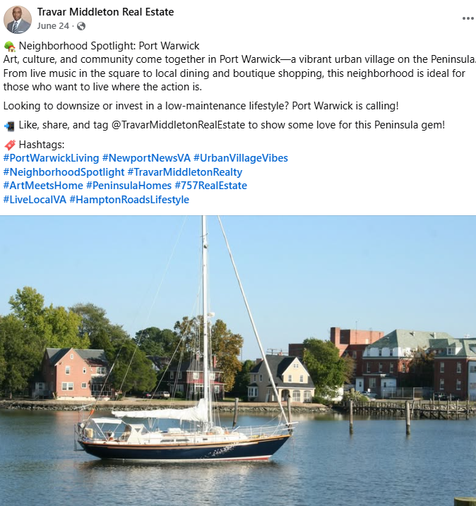 Here’s an example from Travar Middleton Real Estate that promotes the neighborhood the firm serves: