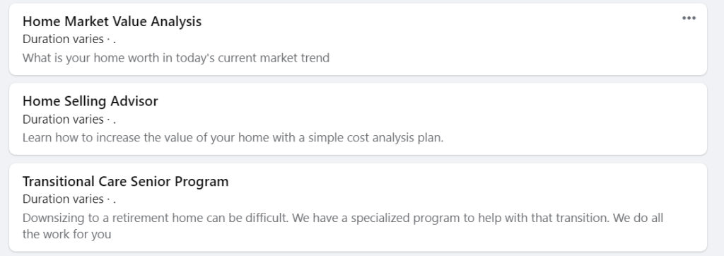 Another helpful option on Facebook is the ability to add information about the services you provide. Be sure to fill this in so your clients understand your offerings, and you avoid missing out on business opportunities: