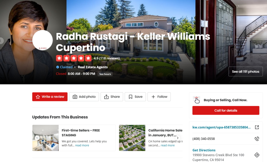 Below is a local citation for Raha Rustagi, a real estate agent at Keller Williams Cupertino: