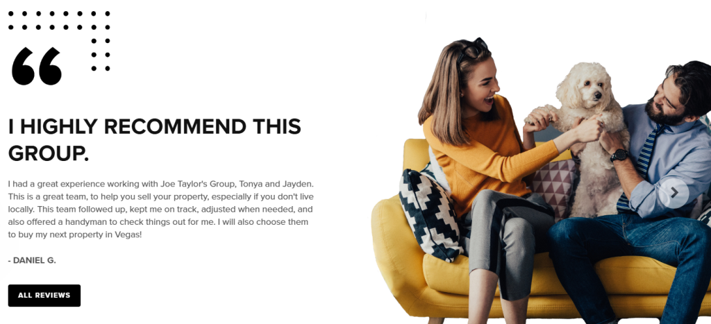 Here’s an example of a real estate website for the Joe Taylor Group, displaying social proof: