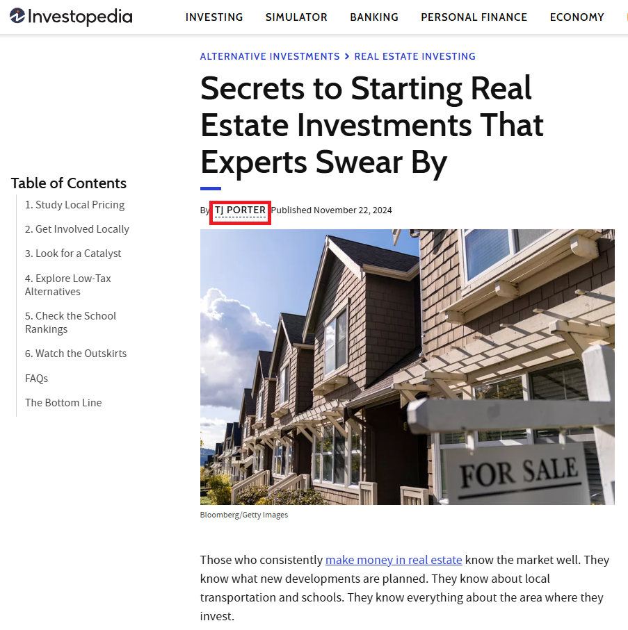 Below is a good guest blog post written by an expert in real estate investing, TJ Porter, published on Investopedia: