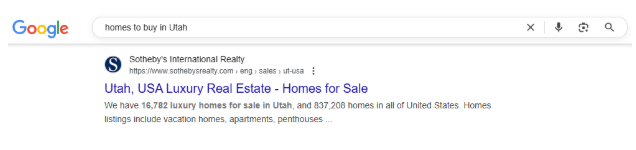 It’s possible that this real estate site has been optimized for SEO as it’s showing up as the first result when we search “homes to buy in Utah”:
