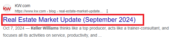 Here’s an example of a well-crafted title tag from Keller Williams: