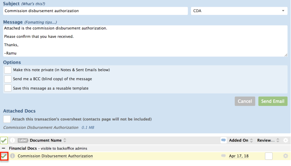 - Fill out the subject and body of the email. For more information on what to include, check out our article on how to create a real estate CDA.